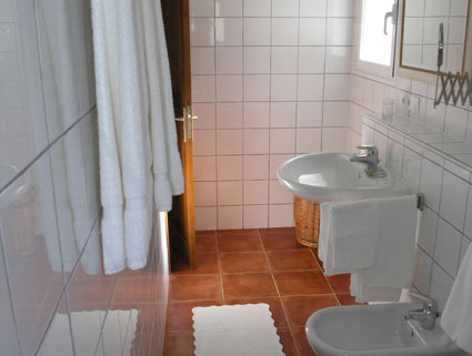 • Bad mit Dusche, Waschbecken, Bidet und WC